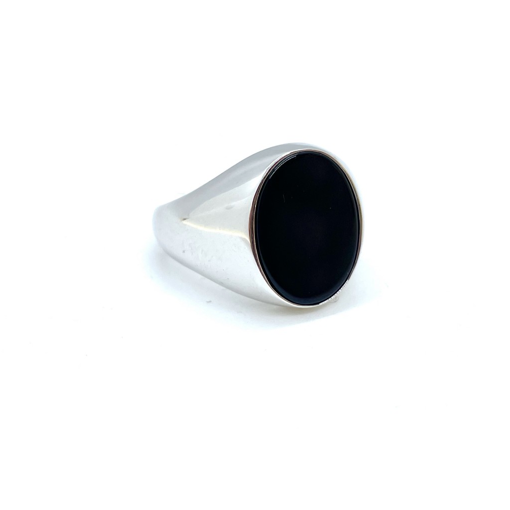 Il modello ha un peso di gr. 8,60 in oro bianco 18 Kt (750 millesimi) con onice nero