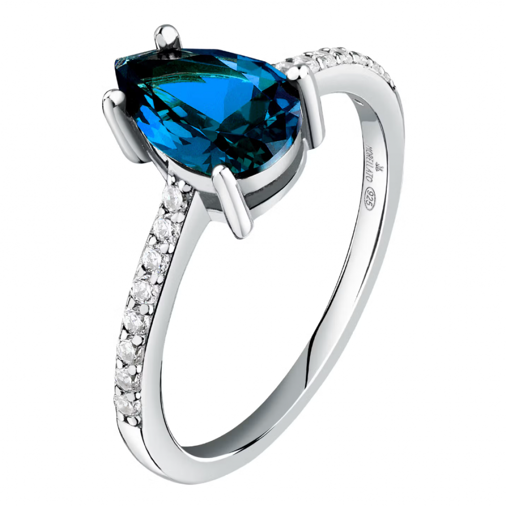 Anello in argento con zirconi bianchi e blue a goccia (0,5cm)