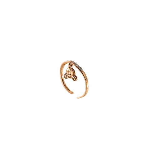 Anello in argento rodiato rosè o gold con zirconi e carrozza pendente