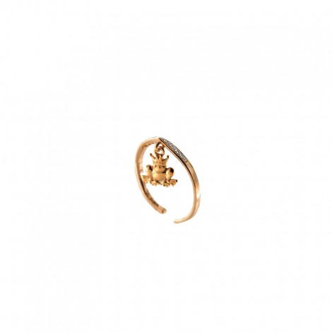 Anello in argento rodiato rosè o gold con zirconi e ranocchio pendente
