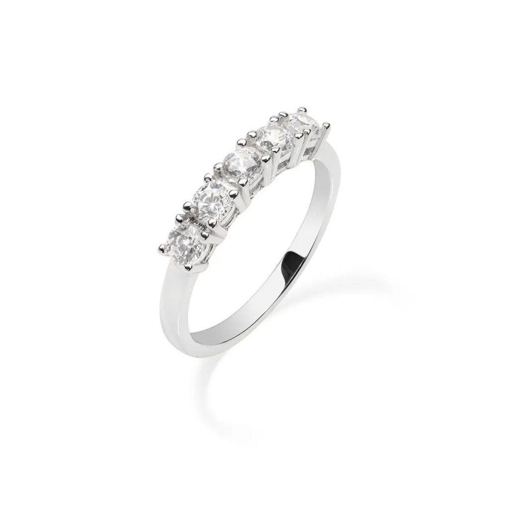 Anello veretta in argento 925 con 5 zirconi bianchi