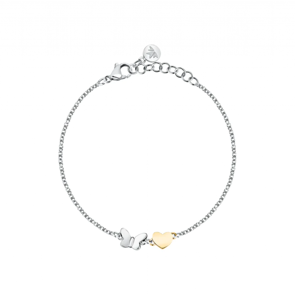 Bracciale in acciaio con cuore gold e farfalla (totale 1cm)