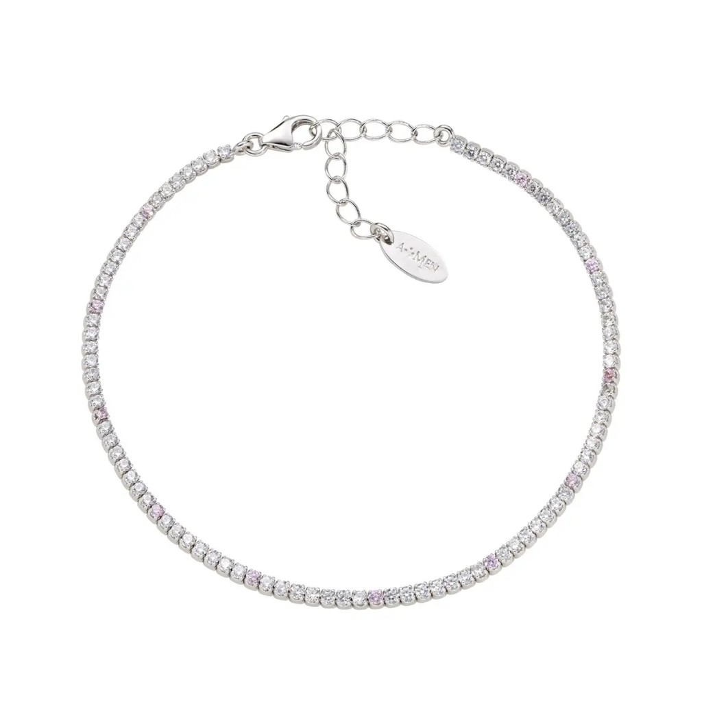 Bracciale in argento tennis con zirconi bianchi e rosa (spesso 3mm)