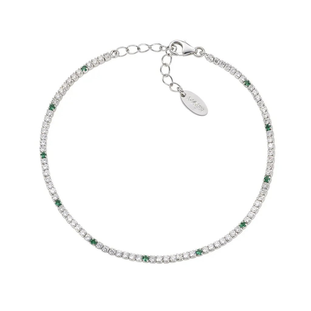 Bracciale in argento tennis con zirconi bianchi e verdi (spesso 3mm)