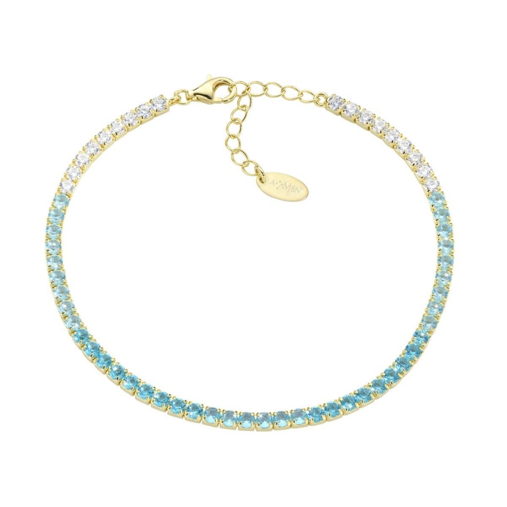 Bracciale in argento gold tennis con zirconi celeste degradè (spesso 3mm)