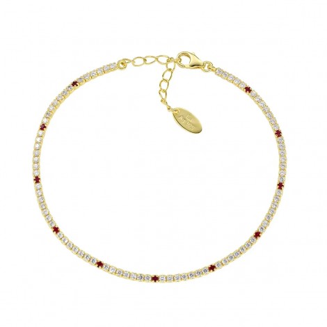 Bracciale tennis in argento gold con zirconi bianchi e rossi (spesso 3mm)