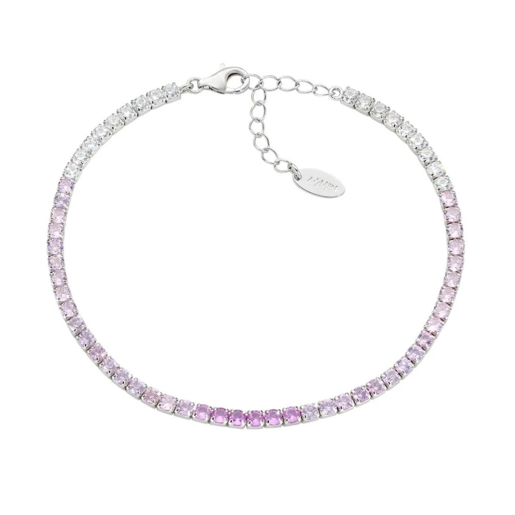 Bracciale tennis in argento con zirconi rosa degradè (spesso 3mm)