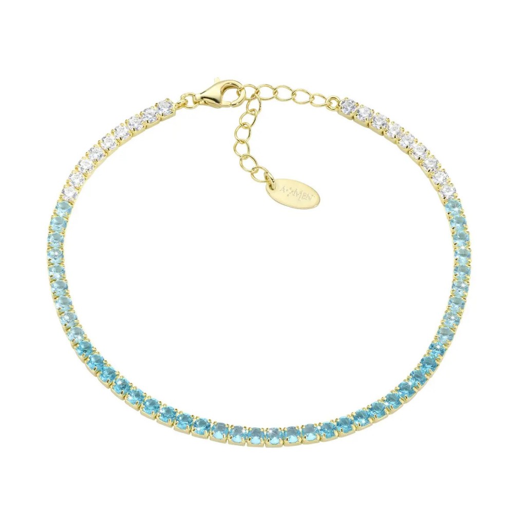 Bracciale tennis in argento gold con zirconi turchesi degradè (spesso 3mm)