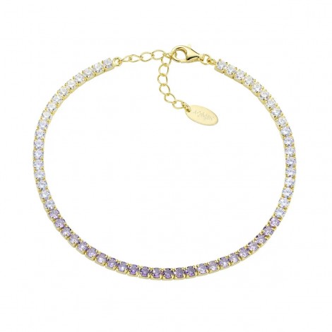 Bracciale tennis in argento gold con zirconi lilla degradè (spesso 3mm)
