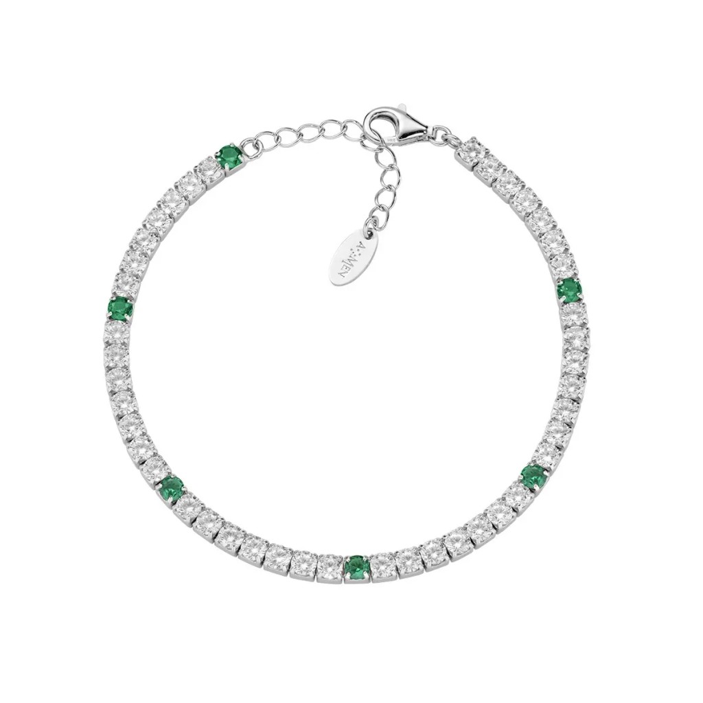 Bracciale tennis in argento con zirconi bianchi e verde (spesso 4mm)