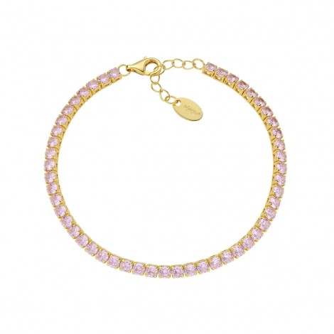 Bracciale tennis in argento gold con zirconi rosa (spesso 4mm)