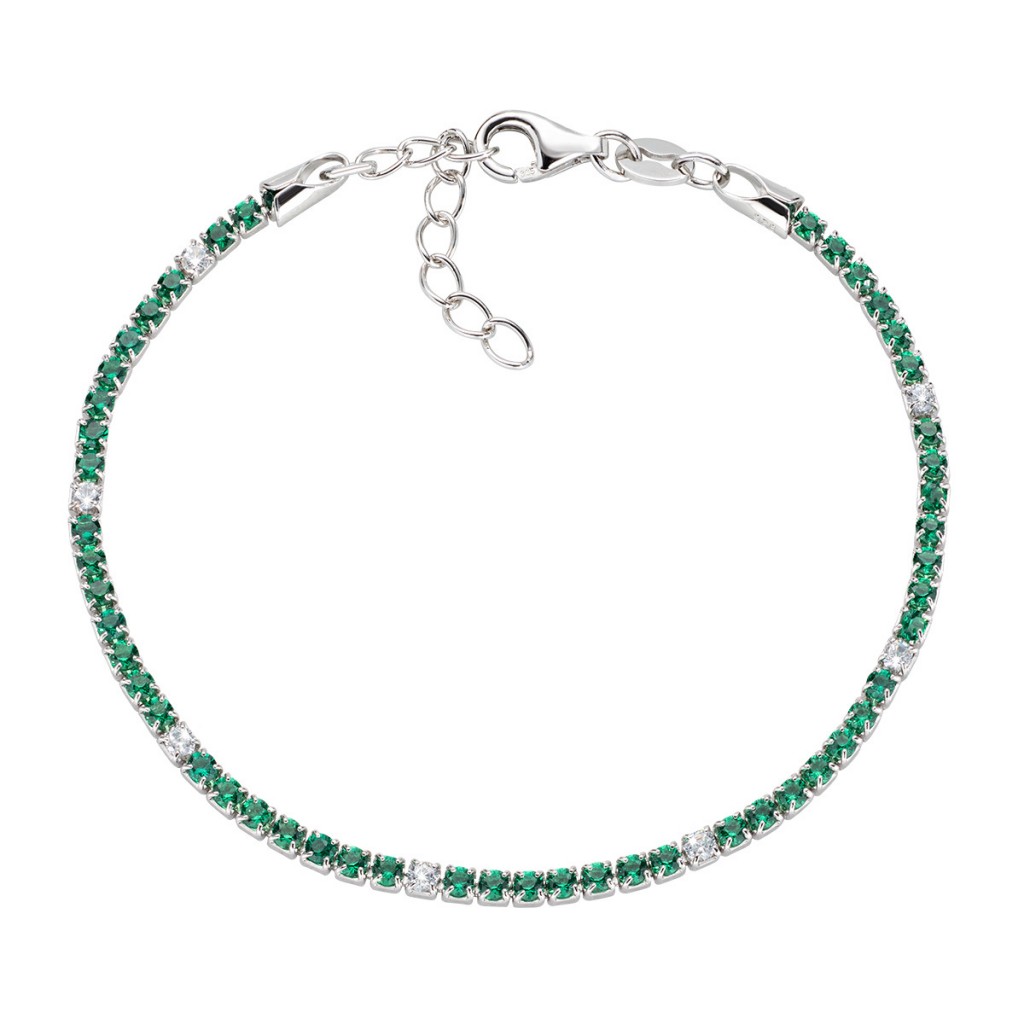 Bracciale in argento tennis con zirconi bianchi e verdi