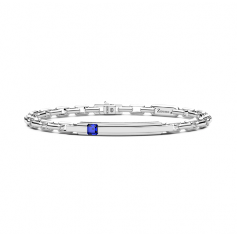 Bracciale in argento 925 design lineare con targa e pietra blue.