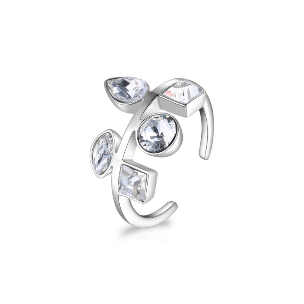 L’anello è in acciaio con cristalli bianchi