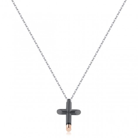 La collana è in acciaio nera con croce pendente