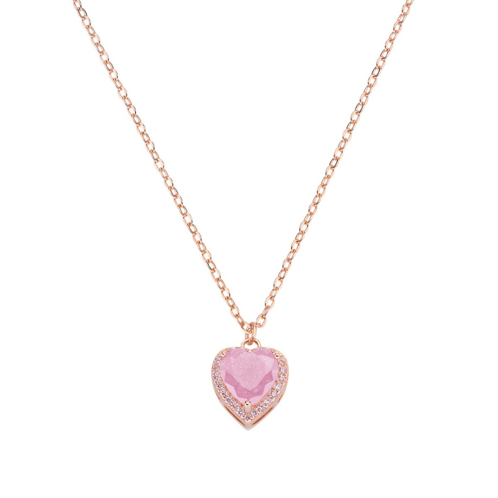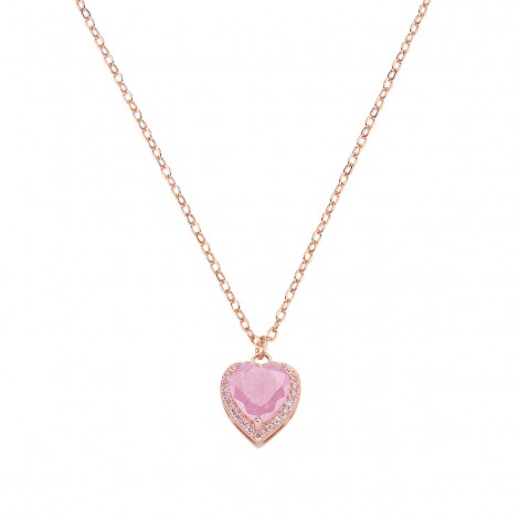 Collana in argento rosè con pietra rosa a forma di cuore pendente