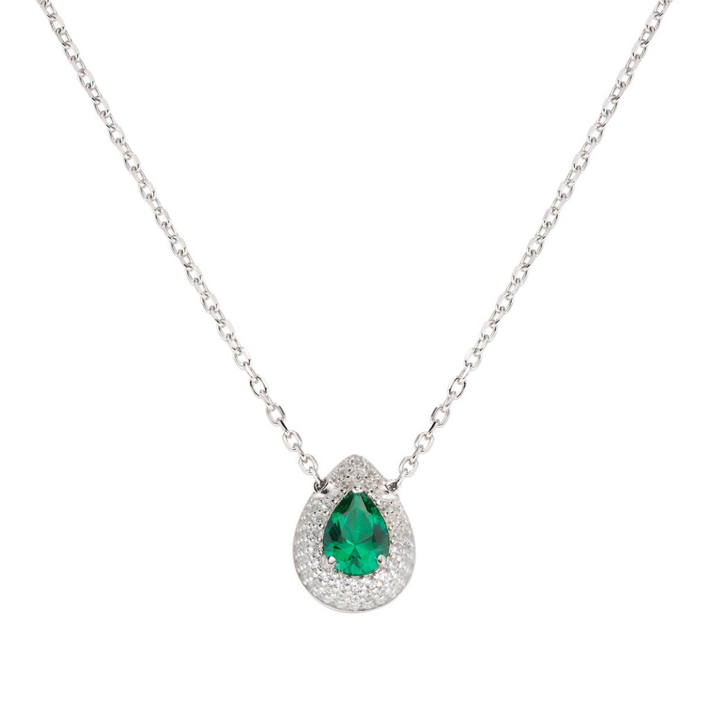 Collana in argento 925 a goccia con zirconi bianchi e verde (1cm)