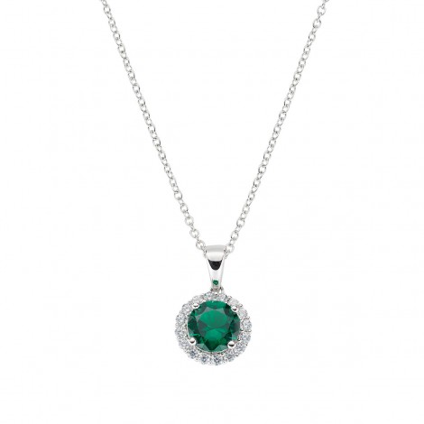 Collana in argento 925 con zirconi bianchi e verde (1cm)
