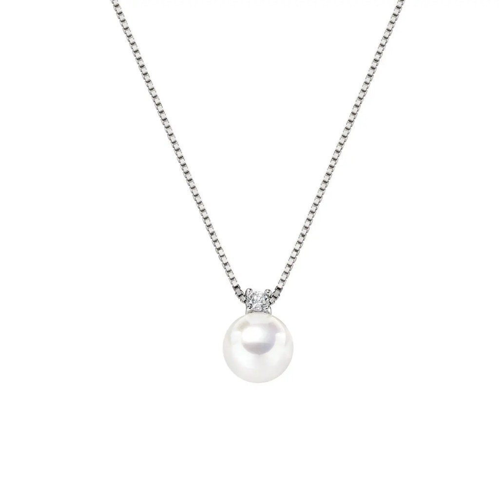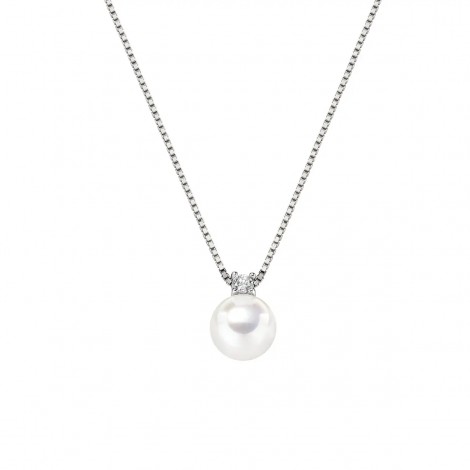 Collana in argento 925 con perla naturale 7,5/8 e zircone bianco