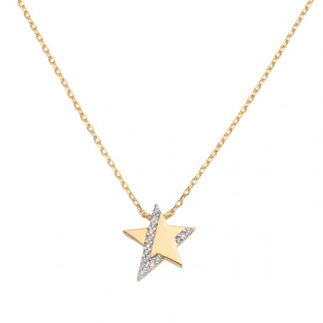 Collana in argento 925 gold con stella e zircone bianco (1cm)