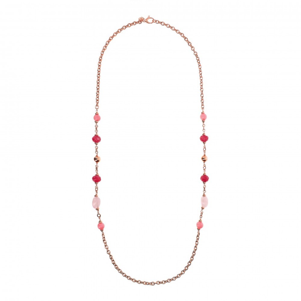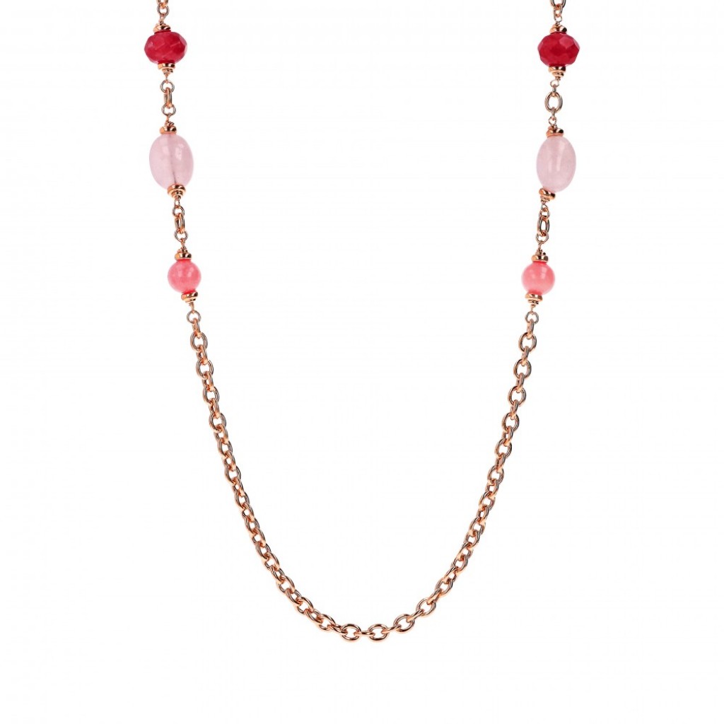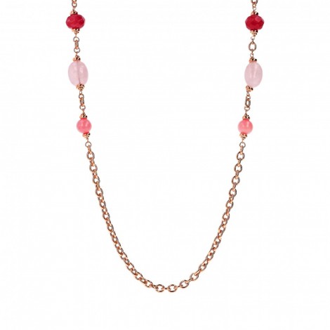 Collana lunga con quarzite rosa e quarzo rosa naturale