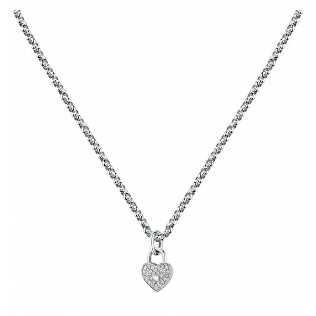 Collana in acciaio con cuore e zirconi bianco (2cm)