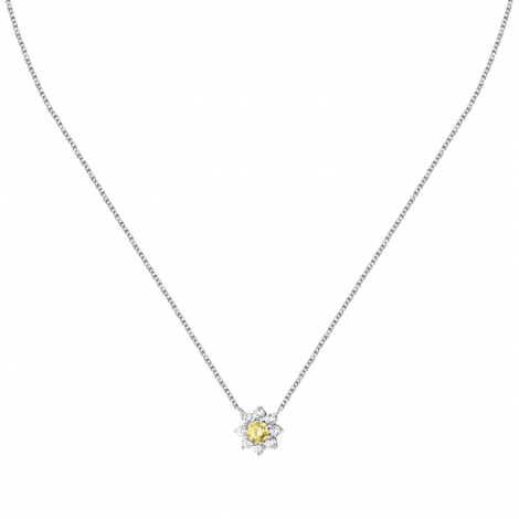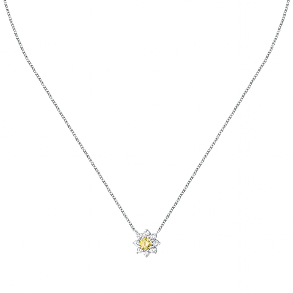 Collana in argento con pendente a forma di fiore con zircone giallo/bianchi (1cm)