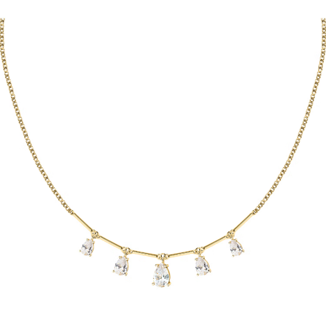 Collana in argento gold con pendenti a forma di goccia con zirconi bianchi (0,5cm)