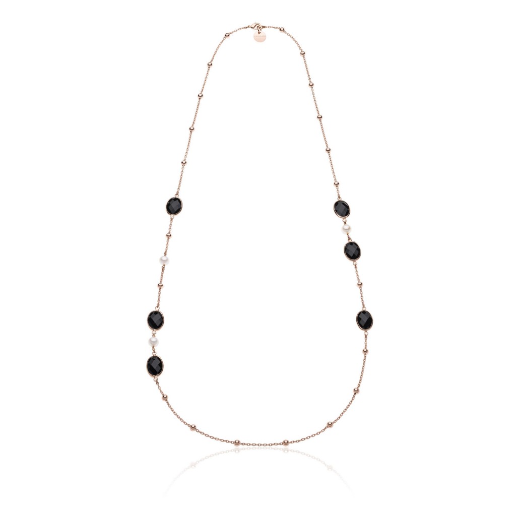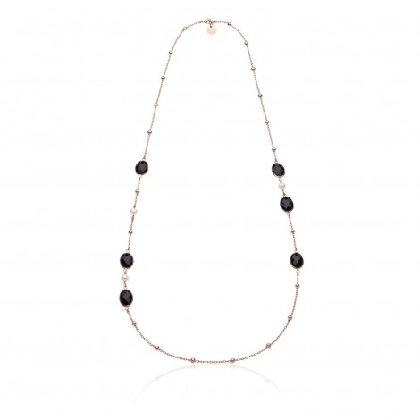 Collana in bronzo rodiata argento golden rosè con pietre e perle naturali.