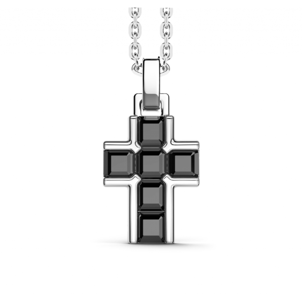 Collana in argento 925 con croce pendente con zirconi neri (1 cm)