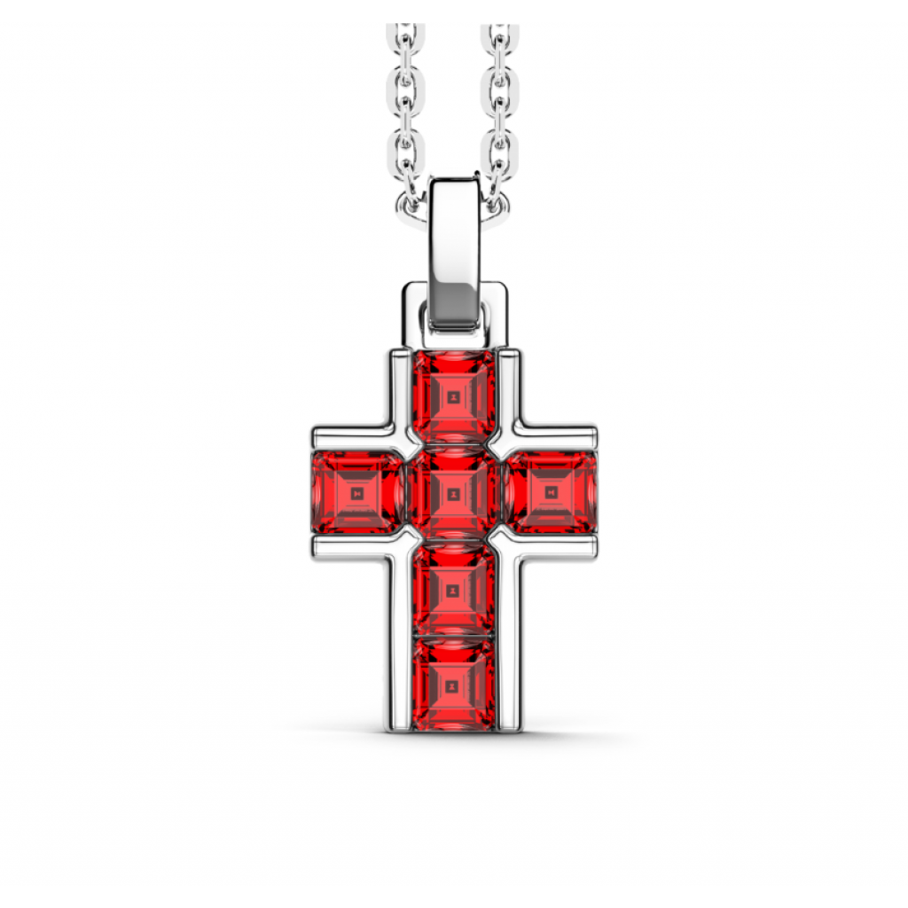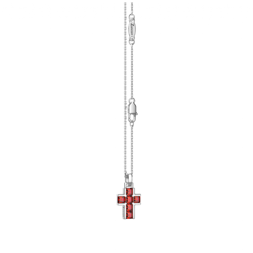 Collana in argento 925 con croce pendente con zirconi rossi (1 cm)