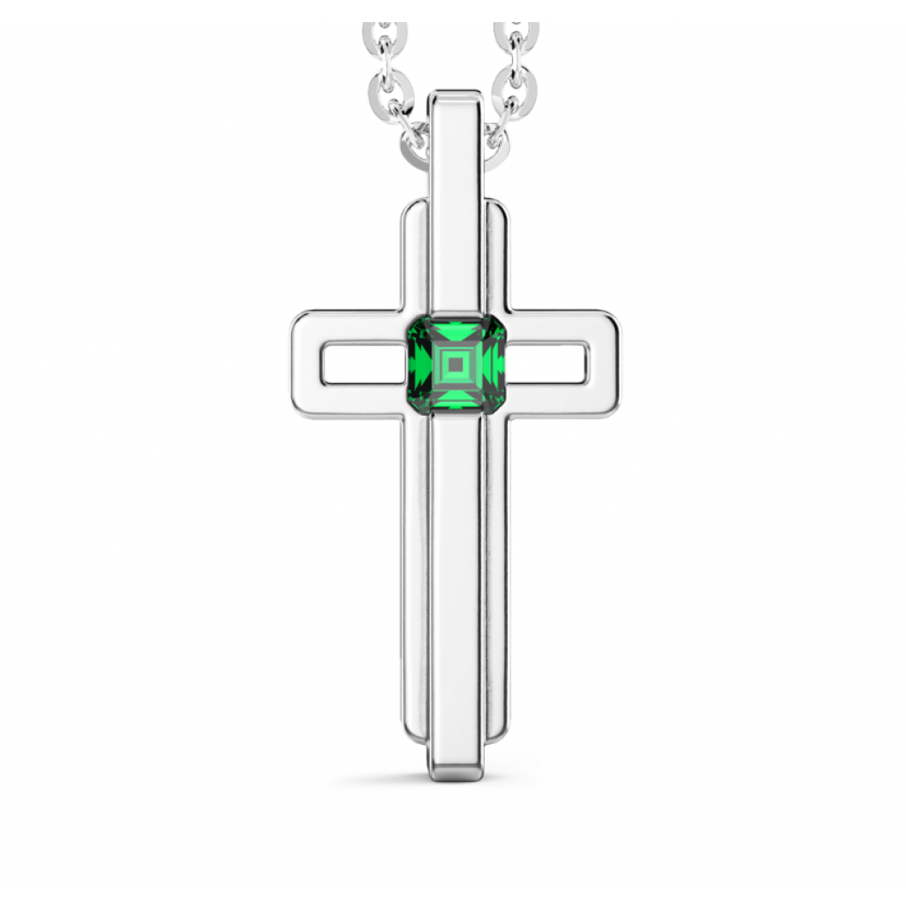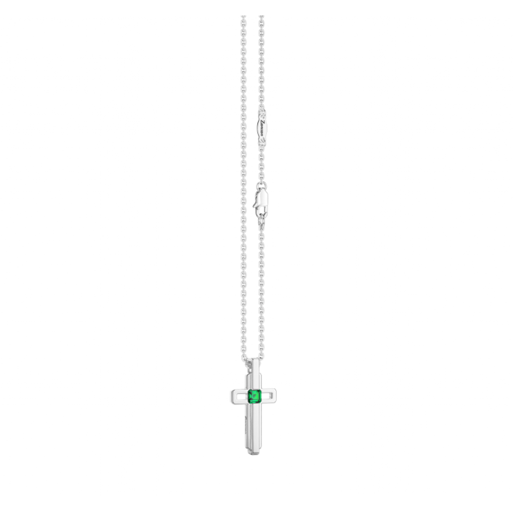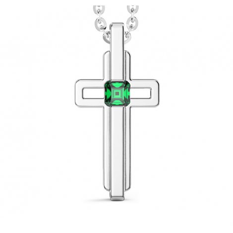 Collana in argento 925 con croce pendente con zircone verde (1 cm)
