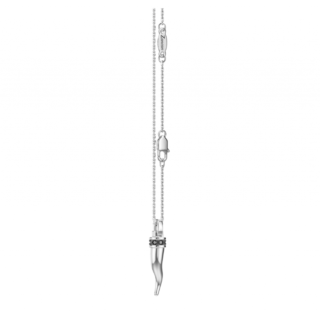 Collana in argento 925 con corno pendente con zircone neri (1 cm)