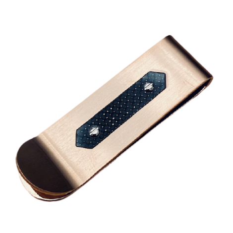 Fermasoldi in acciaio 316-L pvd nero e golden rosè.