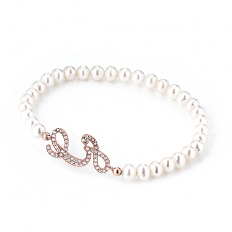 Perle naturali coltivate d’acqua dolce con lettera G (3cm) in argento 925 con galvanica rosè e zirconi