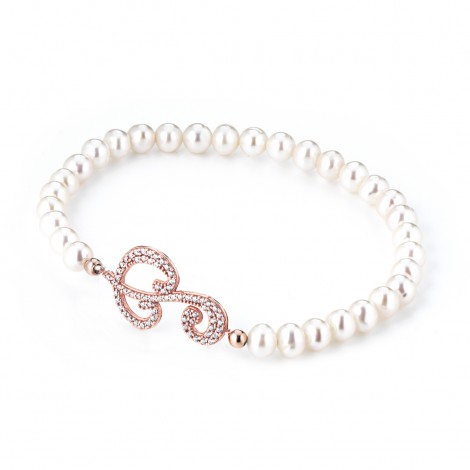 Perle naturali coltivate d’acqua dolce con lettera P (3cm) in argento 925 con galvanica rosè e zirconi