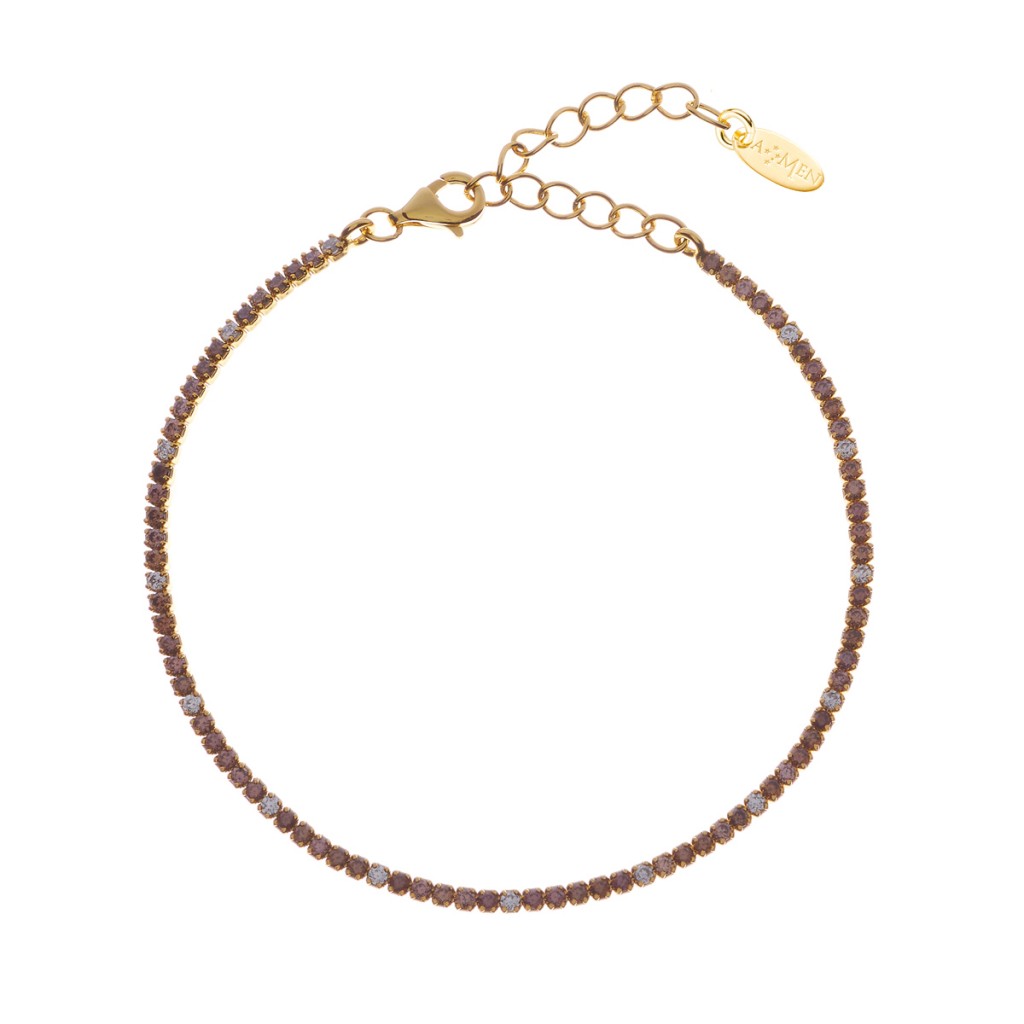 Bracciale in argento gold tennis con zirconi marroni/bianchi (spesso 3mm)