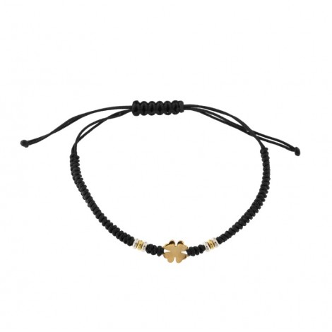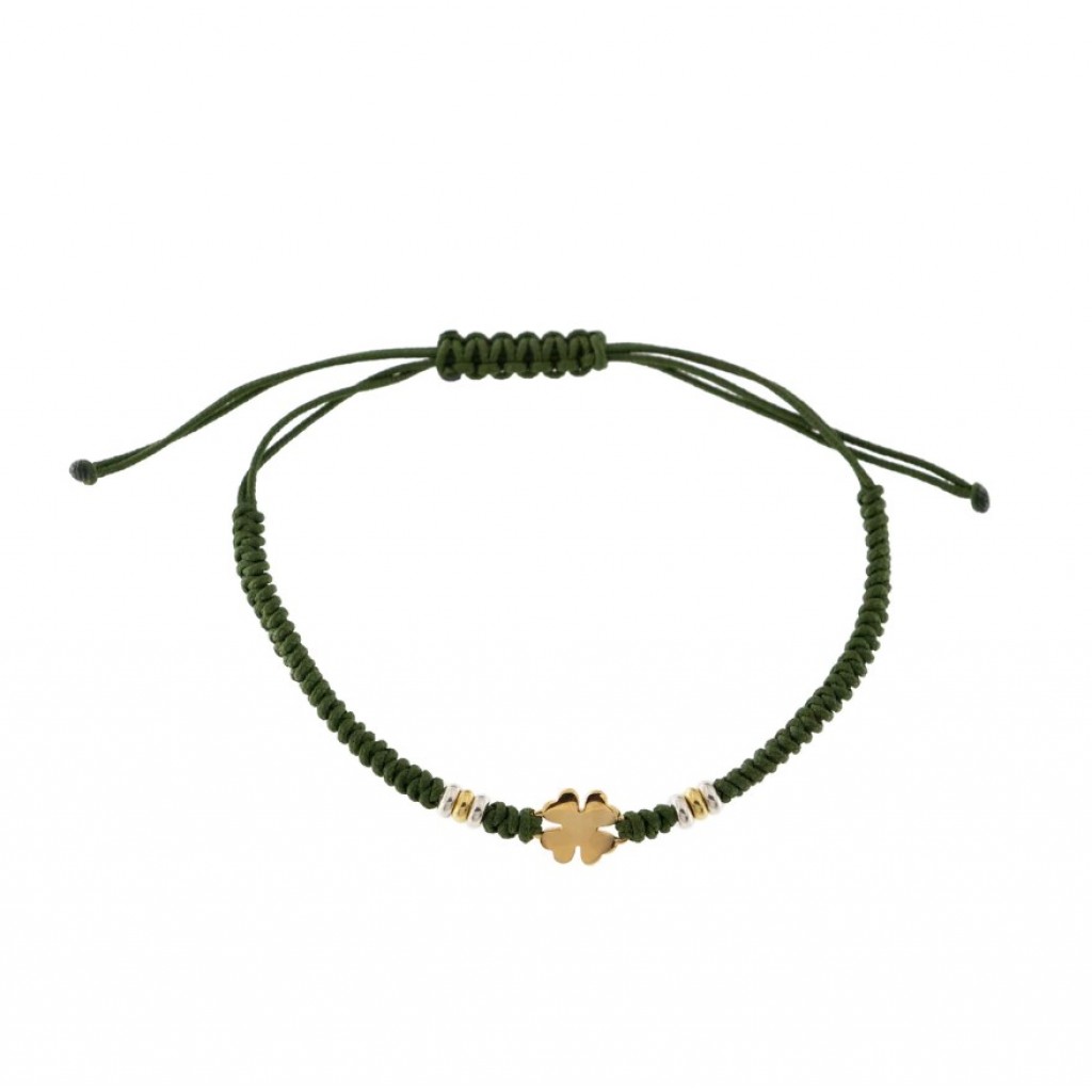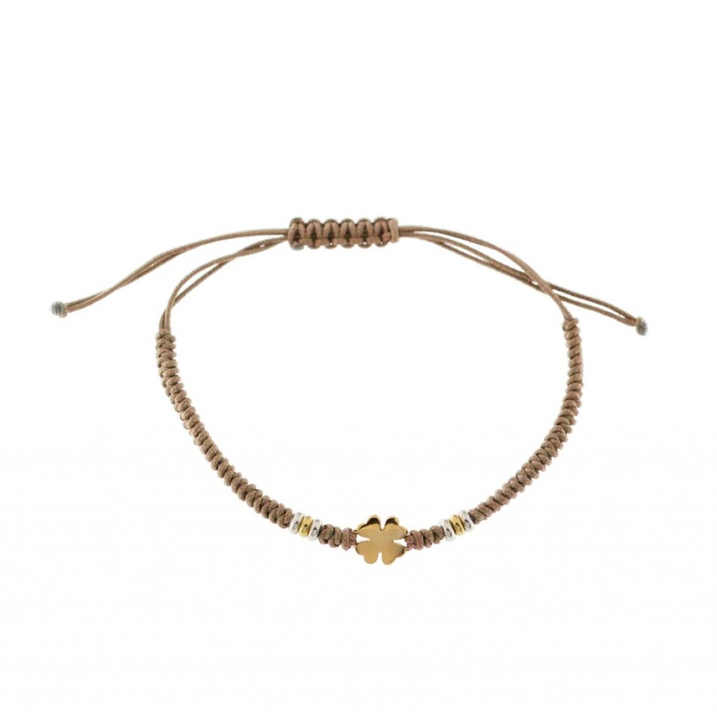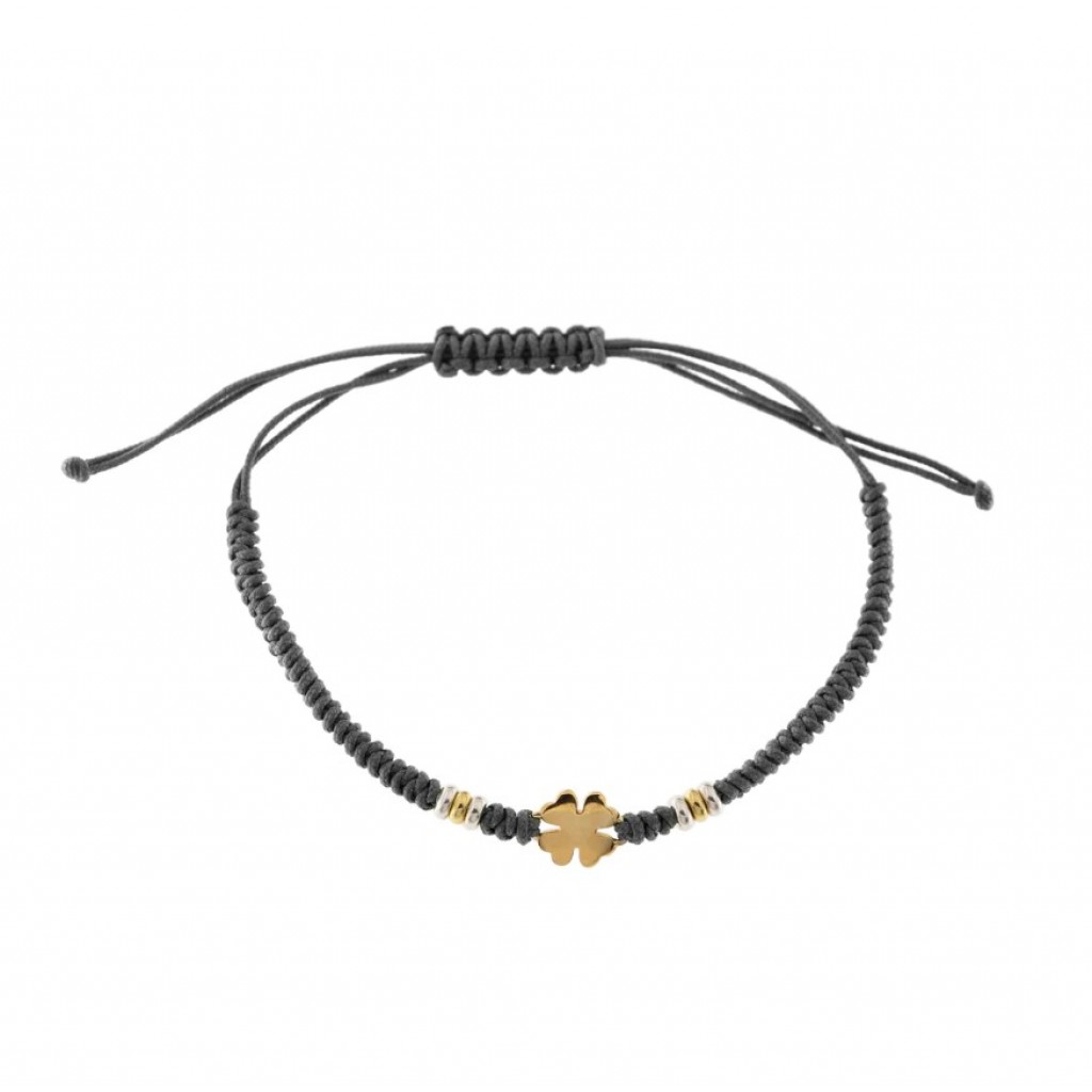 Bracciale in corda con quadrifoglio e inserti in argento