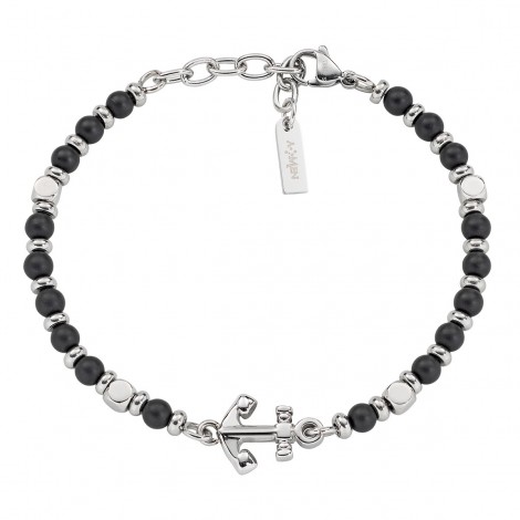 Bracciale in acciaio con inserti neri e ancora