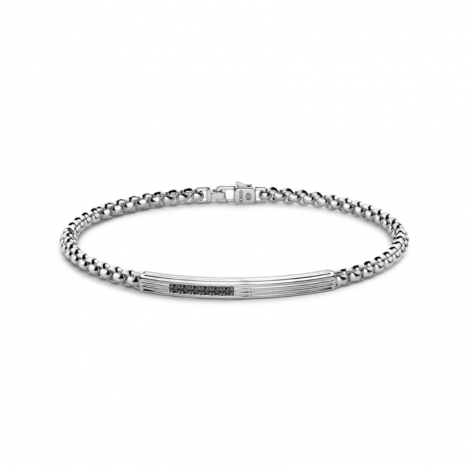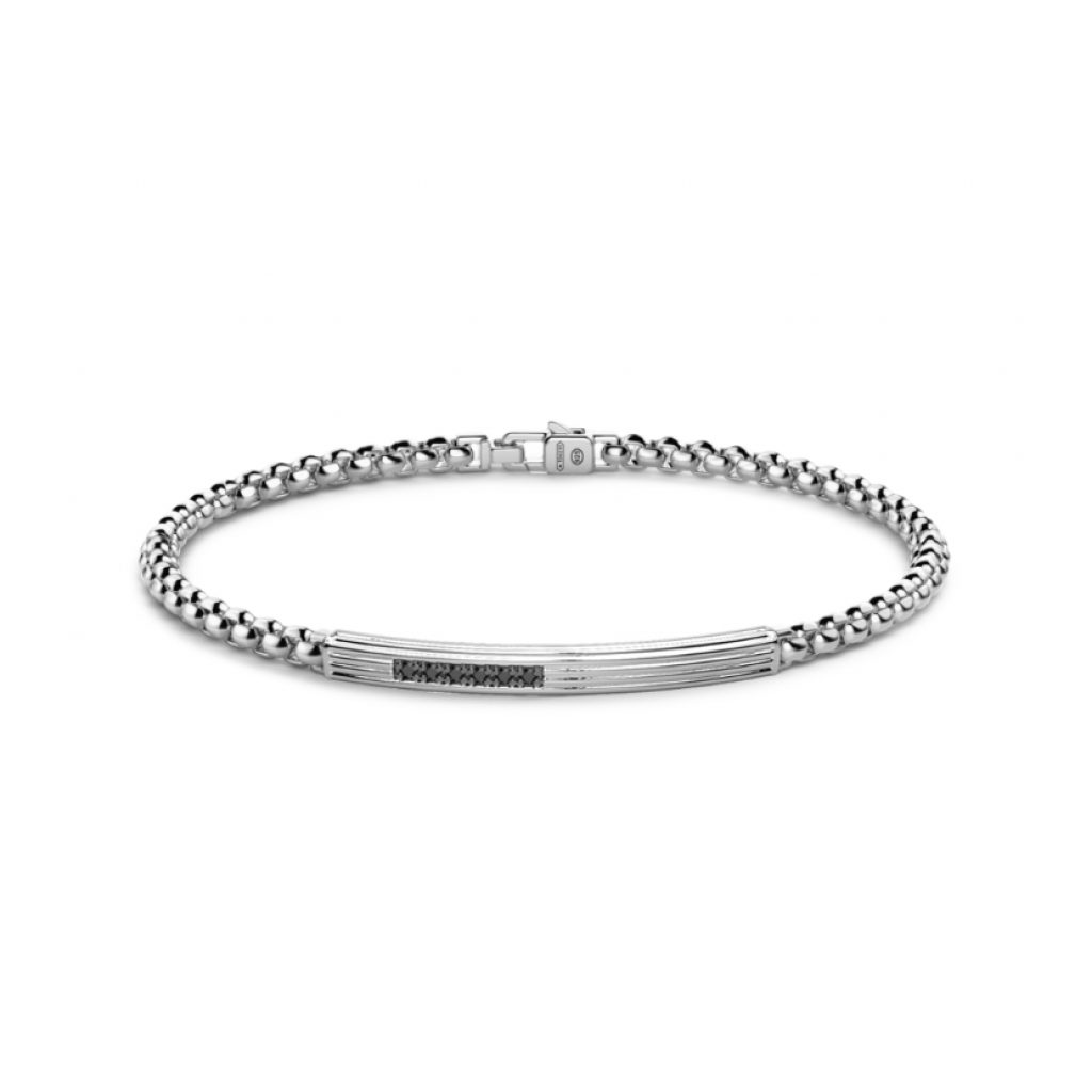 Bracciale in argento 925 design lineare con piastra e zirconi neri