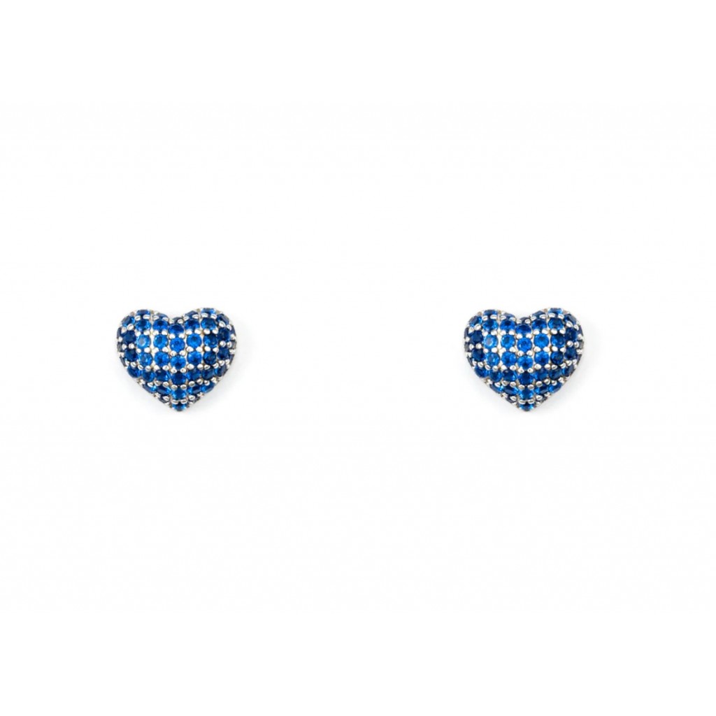 Orecchini in argento 925 a cuore bombato con zirconi blue