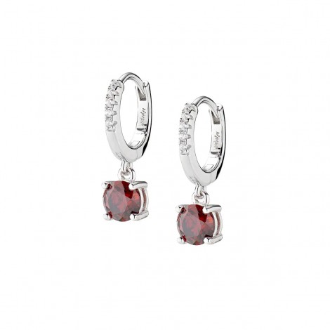 Orecchini a cerchio in argento con zirconi bianchi e rossi