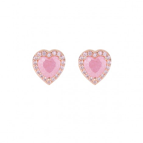 Orecchini in argento rosè con pietra rosa a forma di cuore