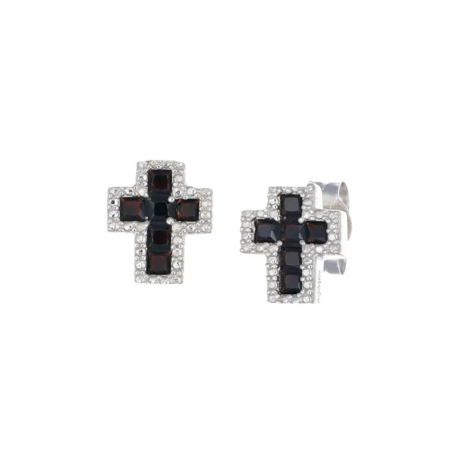 Orecchini in argento con zirconi bianchi/neri a forma di croce