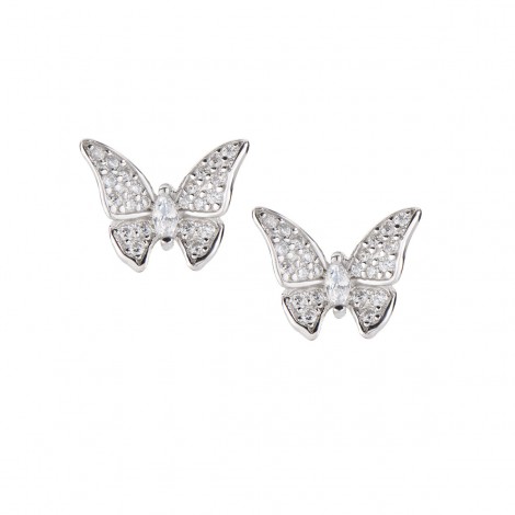 Orecchini in argento a forma di farfallina con zirconi bianchi