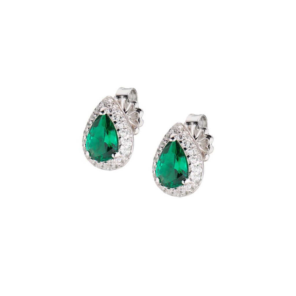 Orecchini in argento 925 con zircone verde e bianchi a goccia