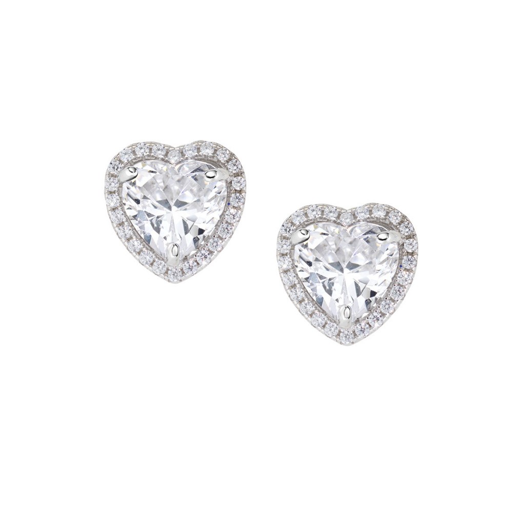 Orecchini in argento con zirconi bianchi a forma di cuore