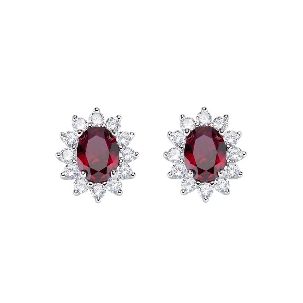 Orecchini in argento 925 con zircone rosso e zirconi bianchi
