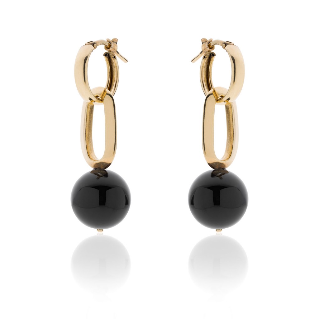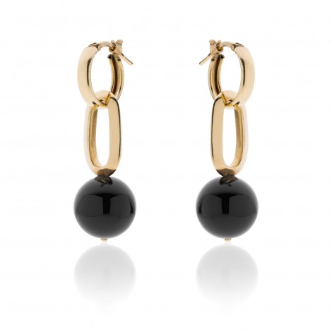 Orecchini in bronzo rodiato dorato con sfera nera pendenti (4cm)