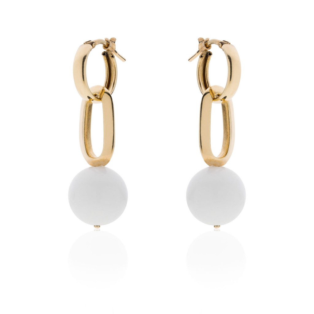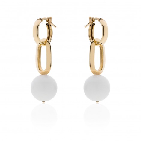 Orecchini in bronzo rodiato dorato con sfera bianca pendenti (4cm)
